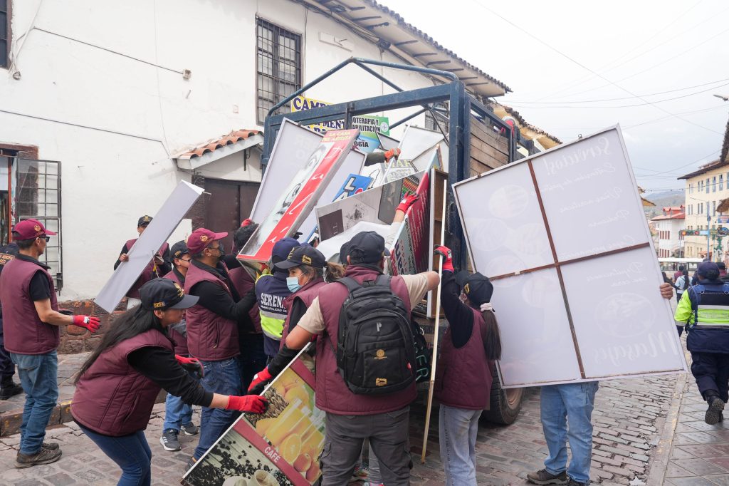 MUNICIPALIDAD DEL CUSCO RETIRÓ CERCA DE 300 LETREROS Y AVISAJE COMERCIAL QUE AFECTABAN LA MONUMENTALIDAD DEL CENTRO HISTÓRICO